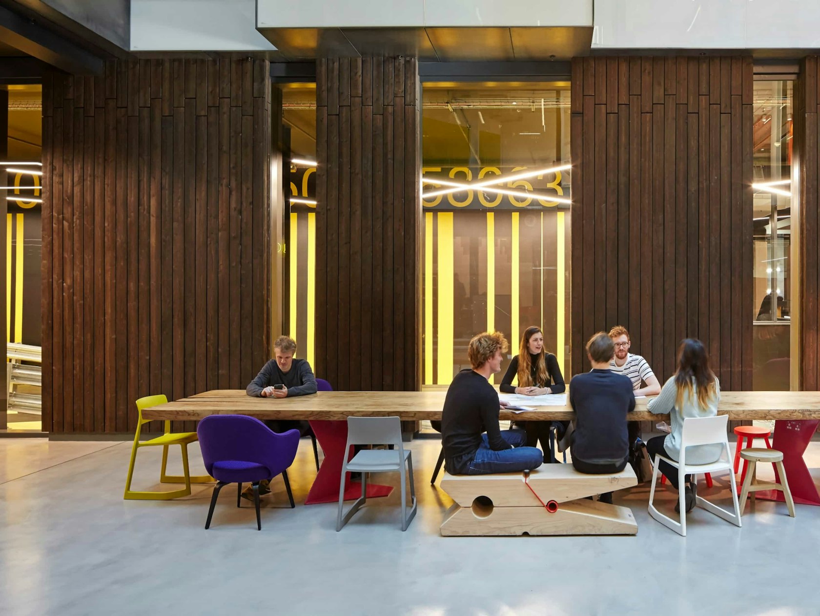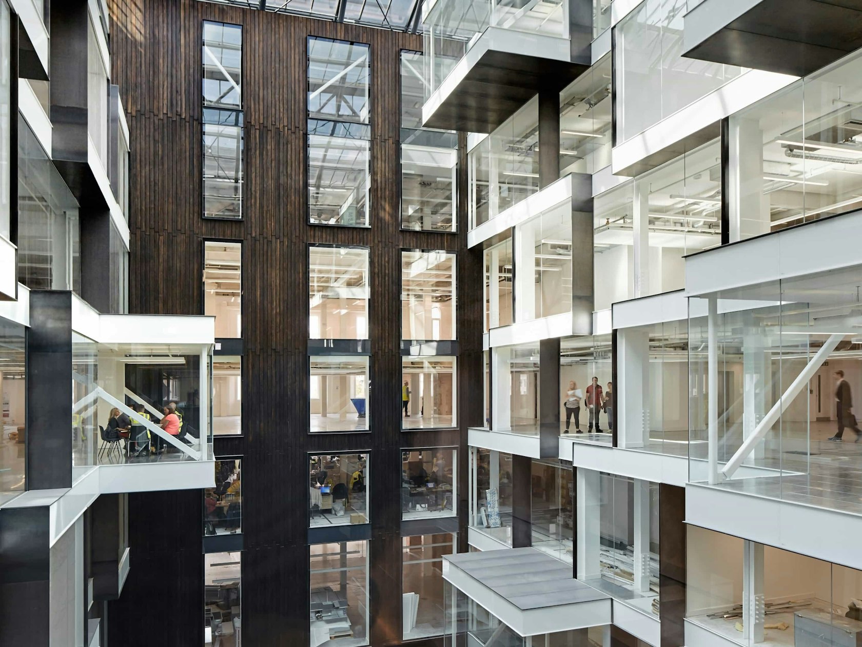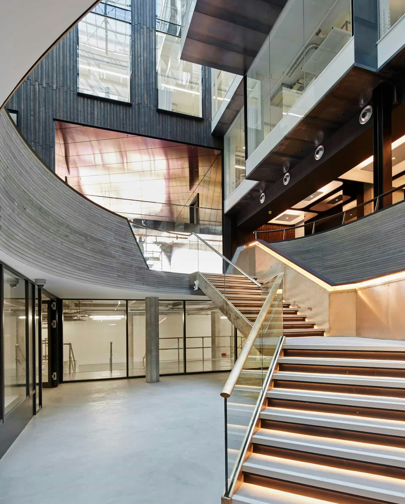 Alphabeta is the melting pot for Two Tribes; the City’s financial sector and the new Creative Media and Tech industries. An energetic shared workspace that straddles the divide and creates a new home for ideas to meet money. The Atrium no longer functions solely as a demonstration of wealth and power, having been reimagined as a common area for the immediate discussion of ideas and possibilities in a collegiate and comfortable surroundings.