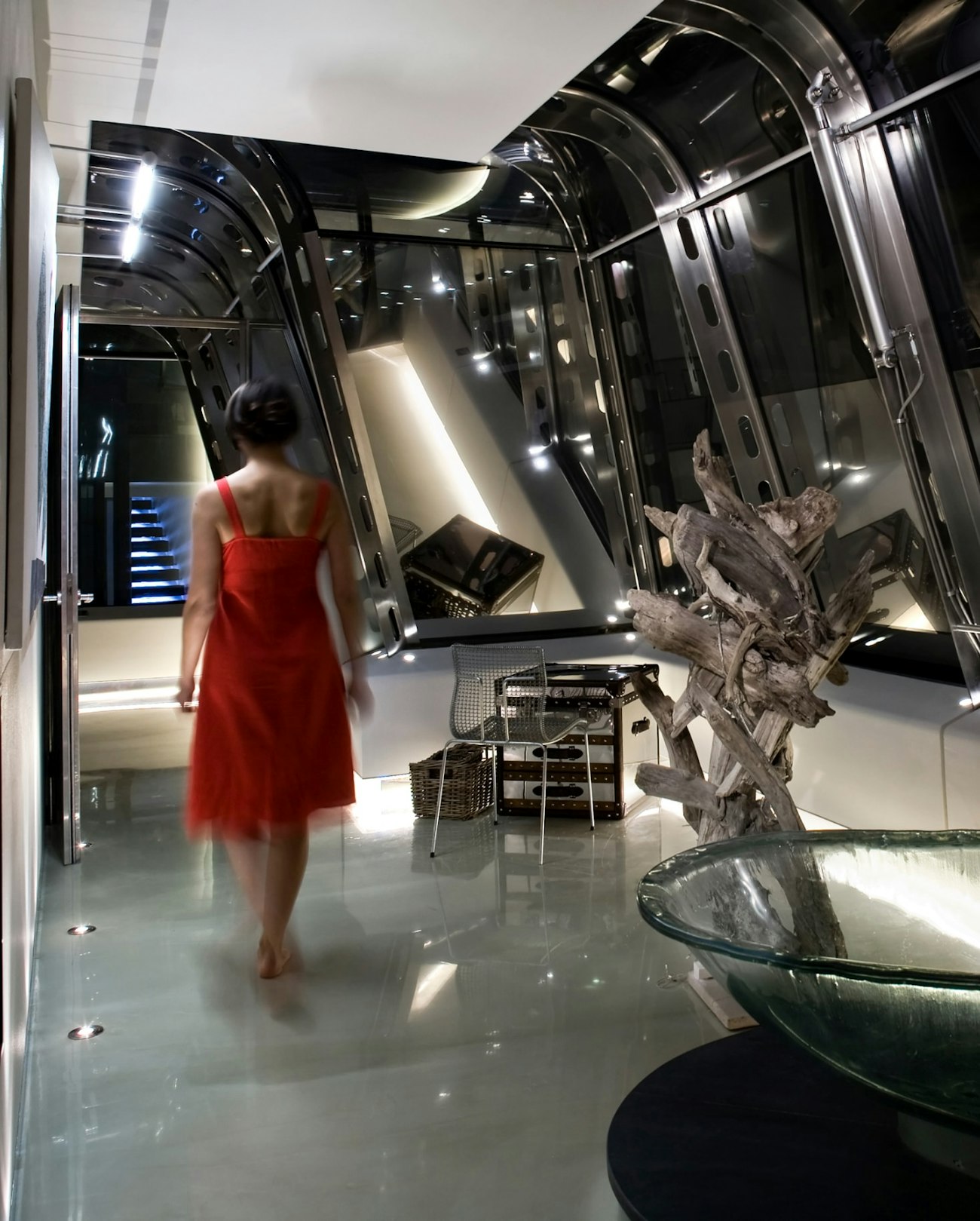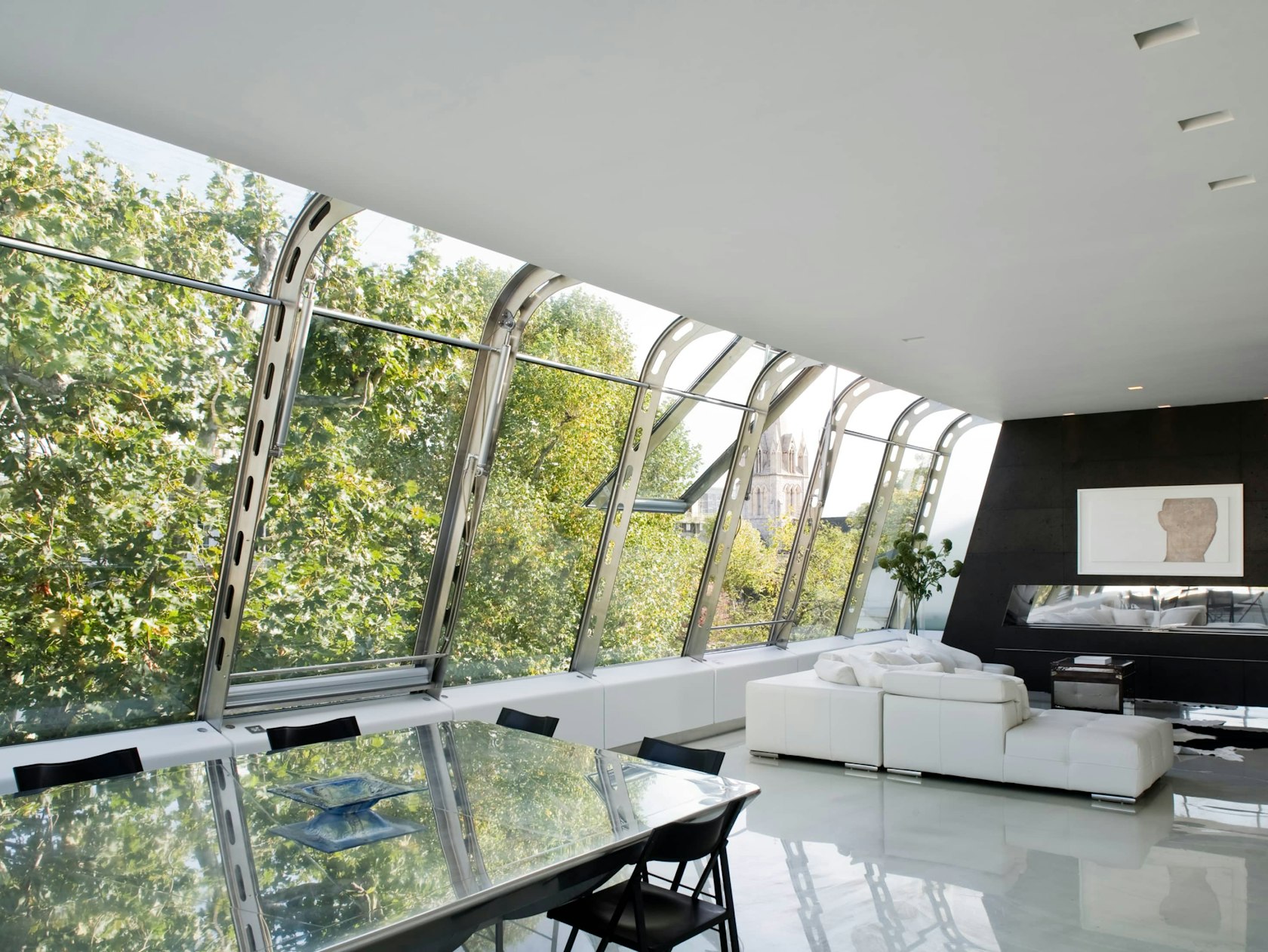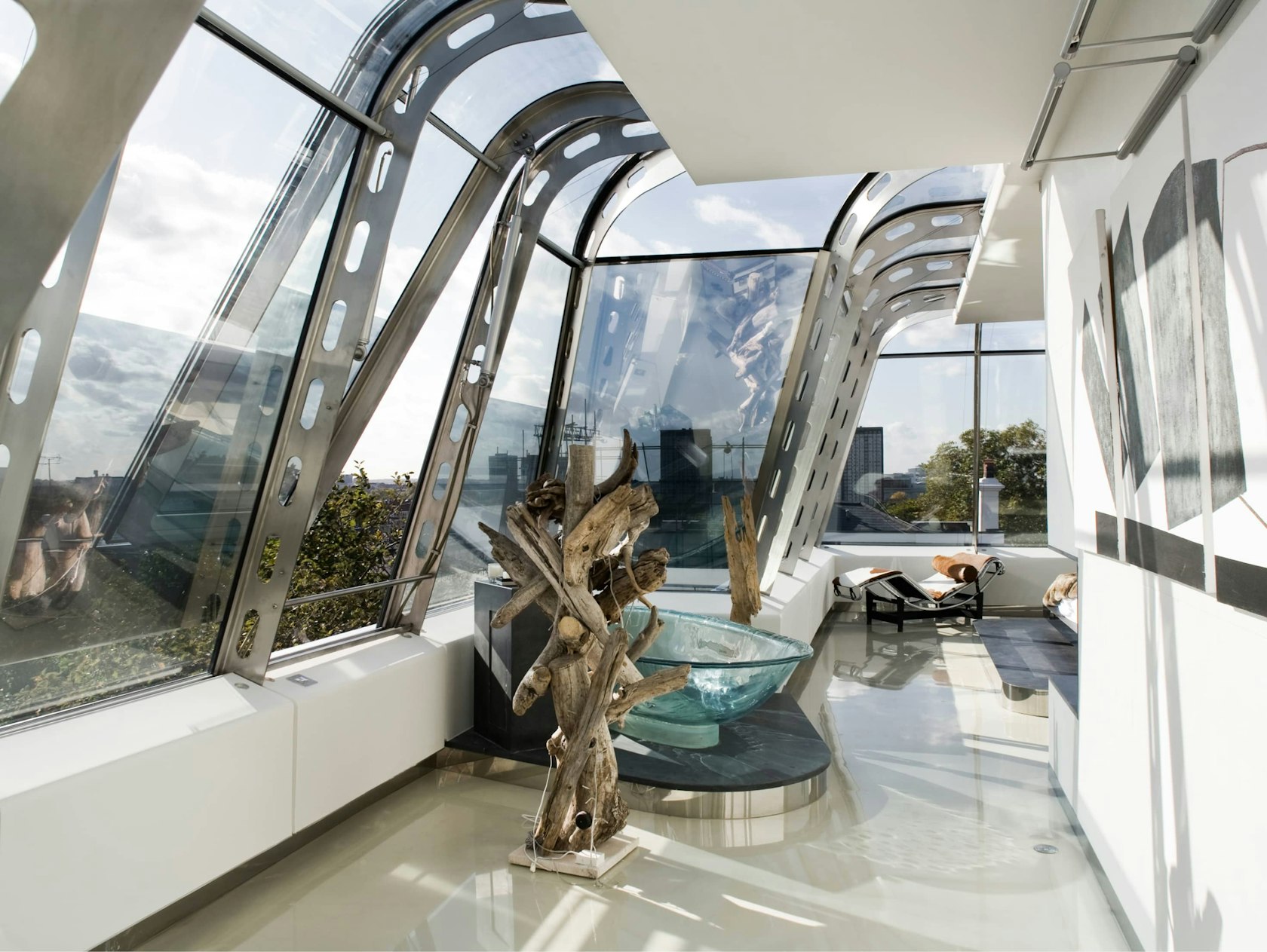 With key design features including the radical use of moulded glass, a gull-wing door and exposed steel framework, Studio RHE won a planning appeal to create a natural extension to an existing mansion block which is futuristic and yet discreetly sympathetic to it’s historic location. Situated in one of London’s most desirable addresses in Notting Hill, interlinking glass walkways and outdoor balcony spaces offer uninterrupted views of the city of London.