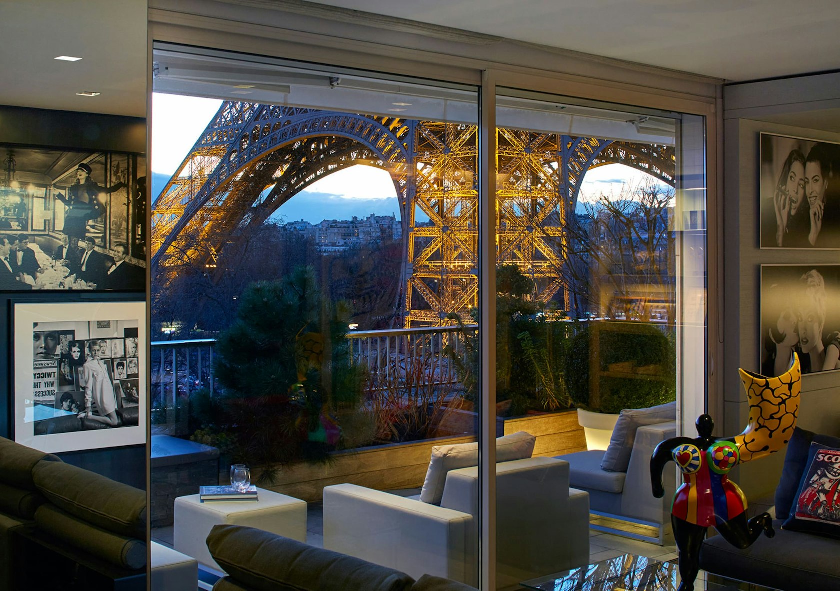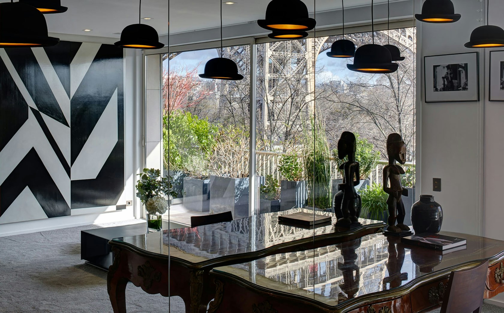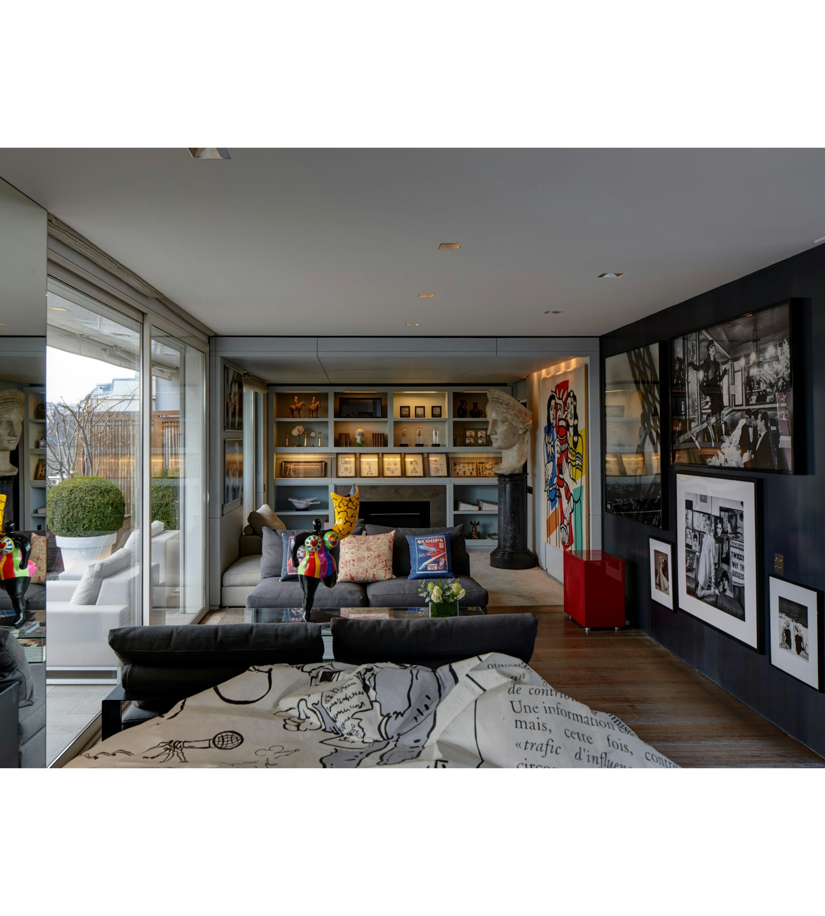 Located in the centre of Paris, this luxury penthouse apartment was designed with the need to house an impressive art collection in mind. The apartment is centred around a light-well and feature glass wall, allowing natural light to filter throughout.