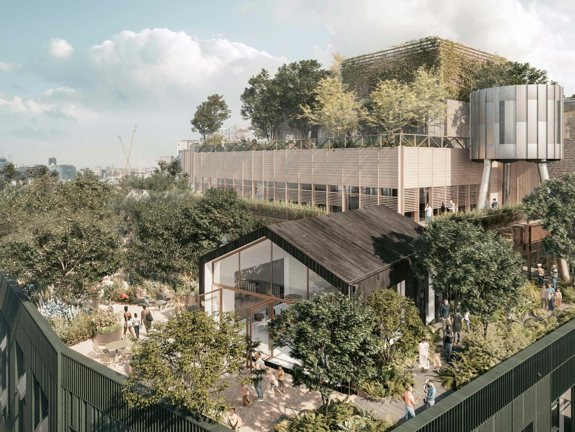 Roots in the Sky has been designed by Studio RHE to be a unique combination of creative power house and an oasis in the city with London’s first urban forest rooftop. Believing that ‘the greenest building is the one that exists’ is what set our creative bid apart from the competition.
