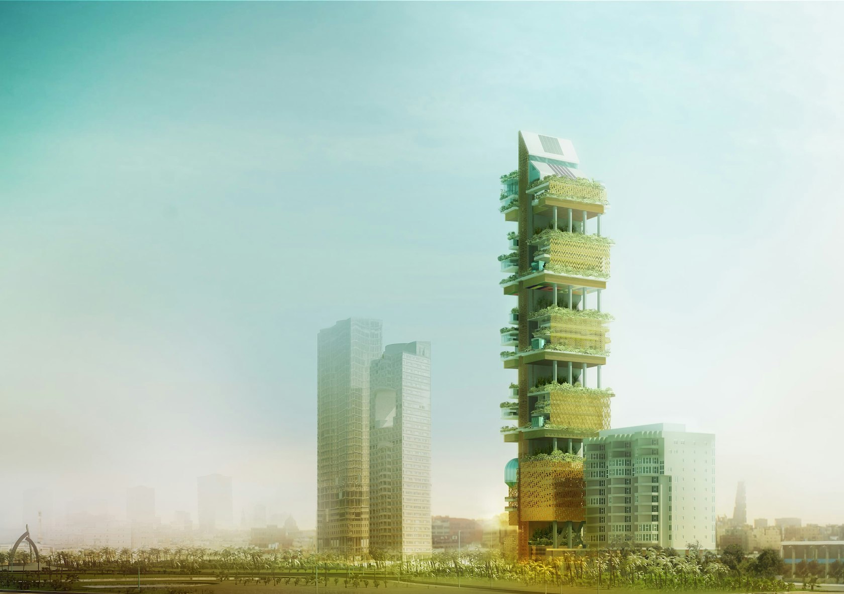 5 Villas built vertically to conserve space on the hugely prized Ocean promenade while also offering the finest views over the Red Sea. Sky Villas are designed to utilise cooling high level sea breezes, catering to the demand for healthy city living. In addition the lower floors of provide office space for the ultimate live/work lifestyle.