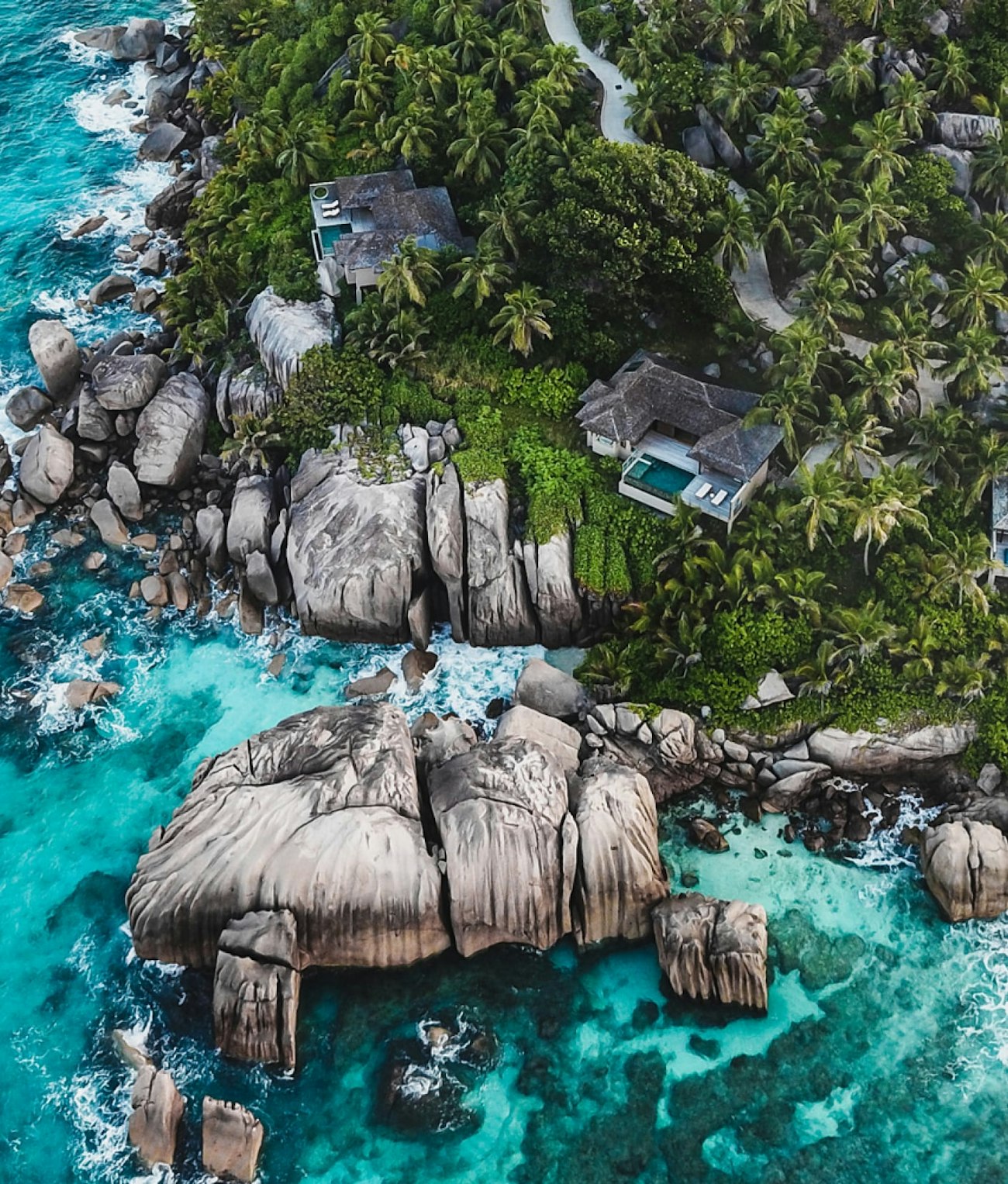 The Six senses Zil Pasyon resort is set around the coastal fringes of the private Seychelles island of Félicité. The resort 35 resort villas, a stunning spa set amongst the rocks as well as extensive front and back of house facilities. The architecture is as a modern interpretation of the indigenous style which allows it to blend seamlessly with the lush tropical landscape while ensuring ultimate privacy between each building. Internally the spacious contemporary layouts and interiors create the ideal setting for taking in the spectacular views.